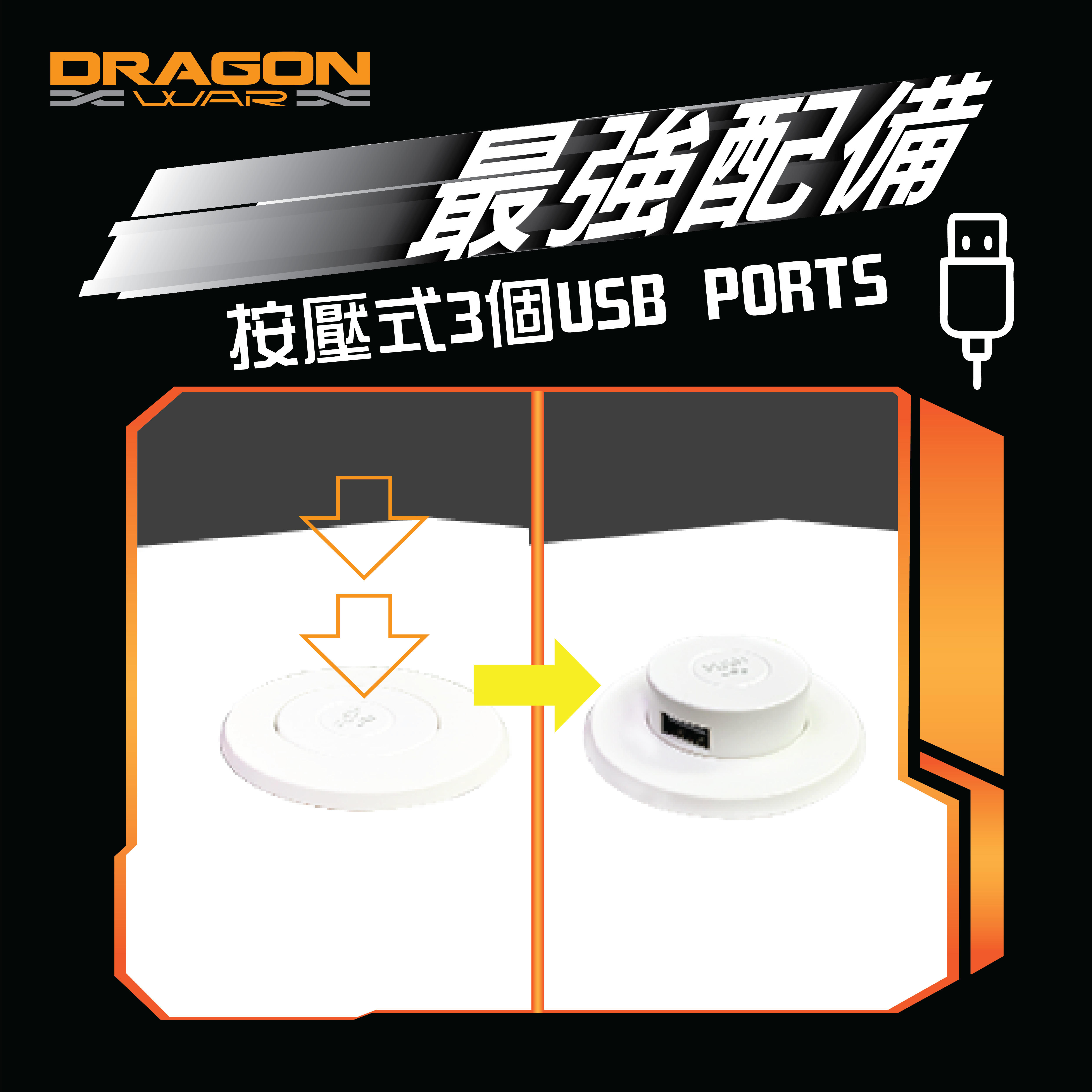– Hidden Pop-Up 3 USB ports (Optional Feature)
