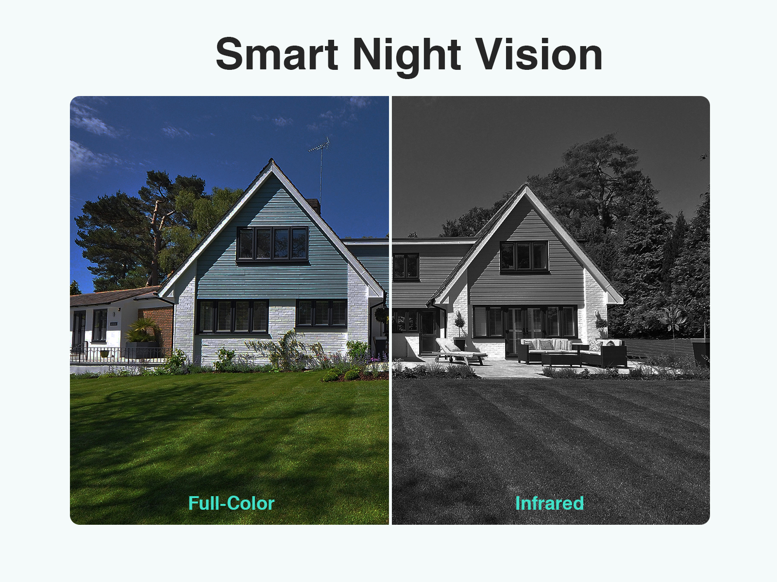- Super AI full-color night vision device makes the night look like daytime, with 24-hour protection