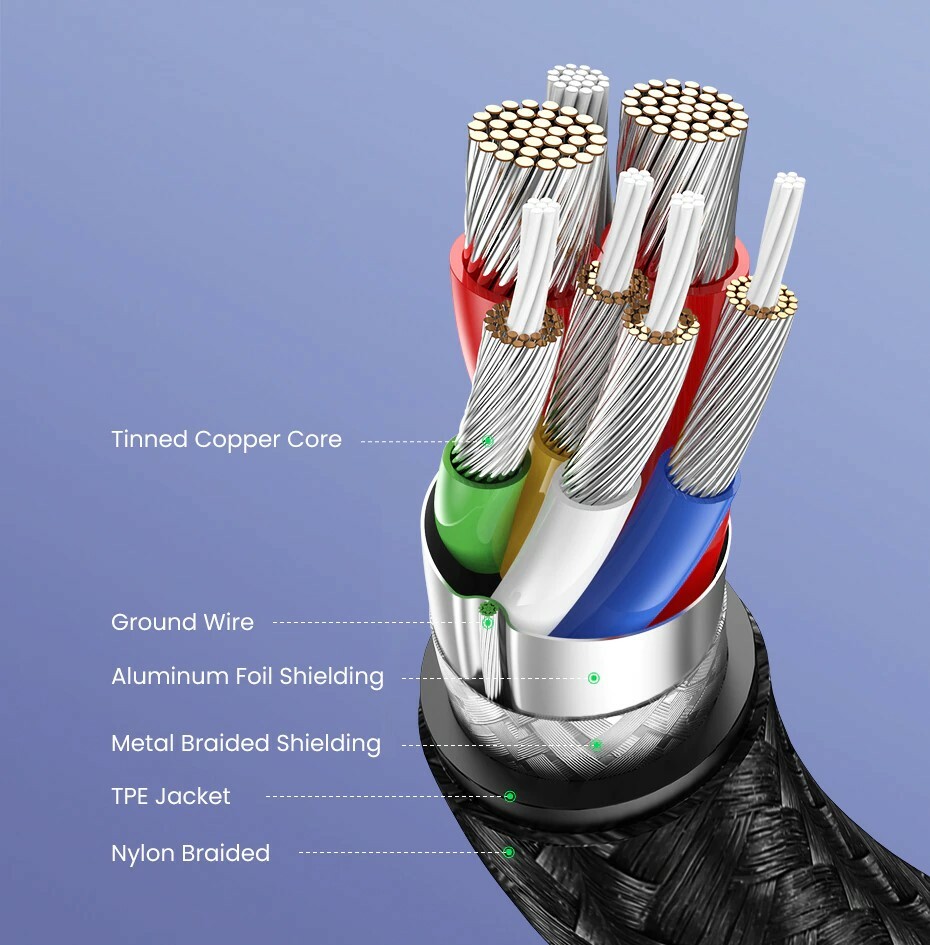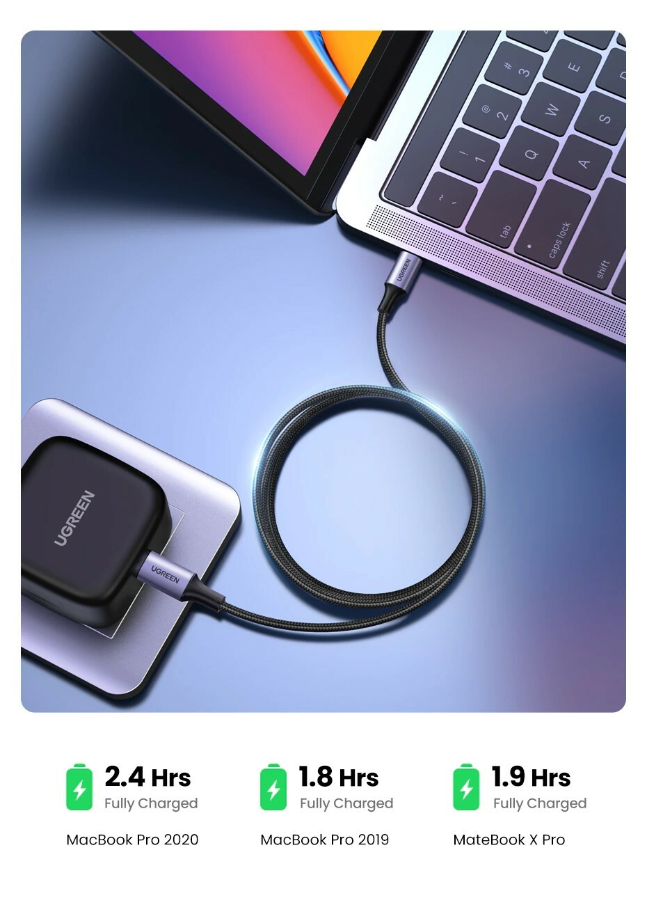 UGREEN - PD 100W 5A快充電線/傳輸線 Type-C對Type-C金屬殼編織線 (1M - 3M)
