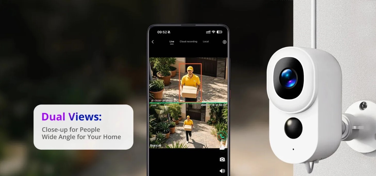 Botslab - C203太陽能供電攝影機 廣角+AI特寫雙畫面