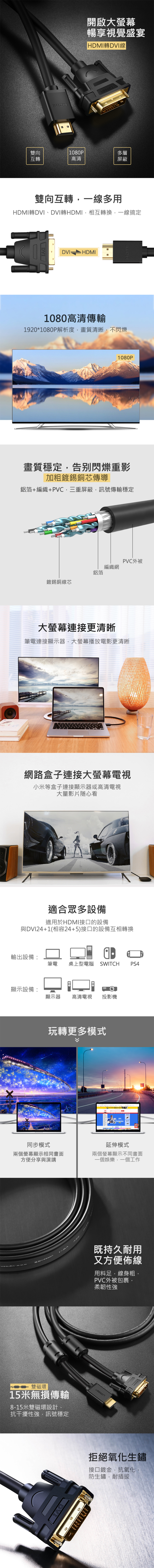 UGREEN - 10138 HDMI/DVI雙向互轉版 影像轉換線 HDMI A公-DVI 25(24+1)公 (1M - 10M)