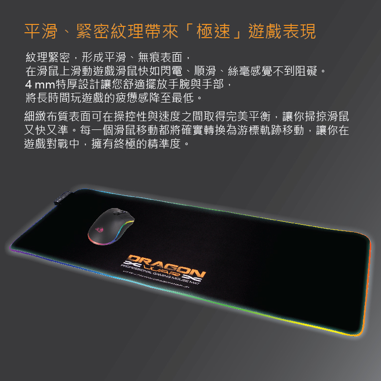 -細緻布質表面可在操控性與速度之間取得完美平衡,讓你掃掠滑鼠又快又準