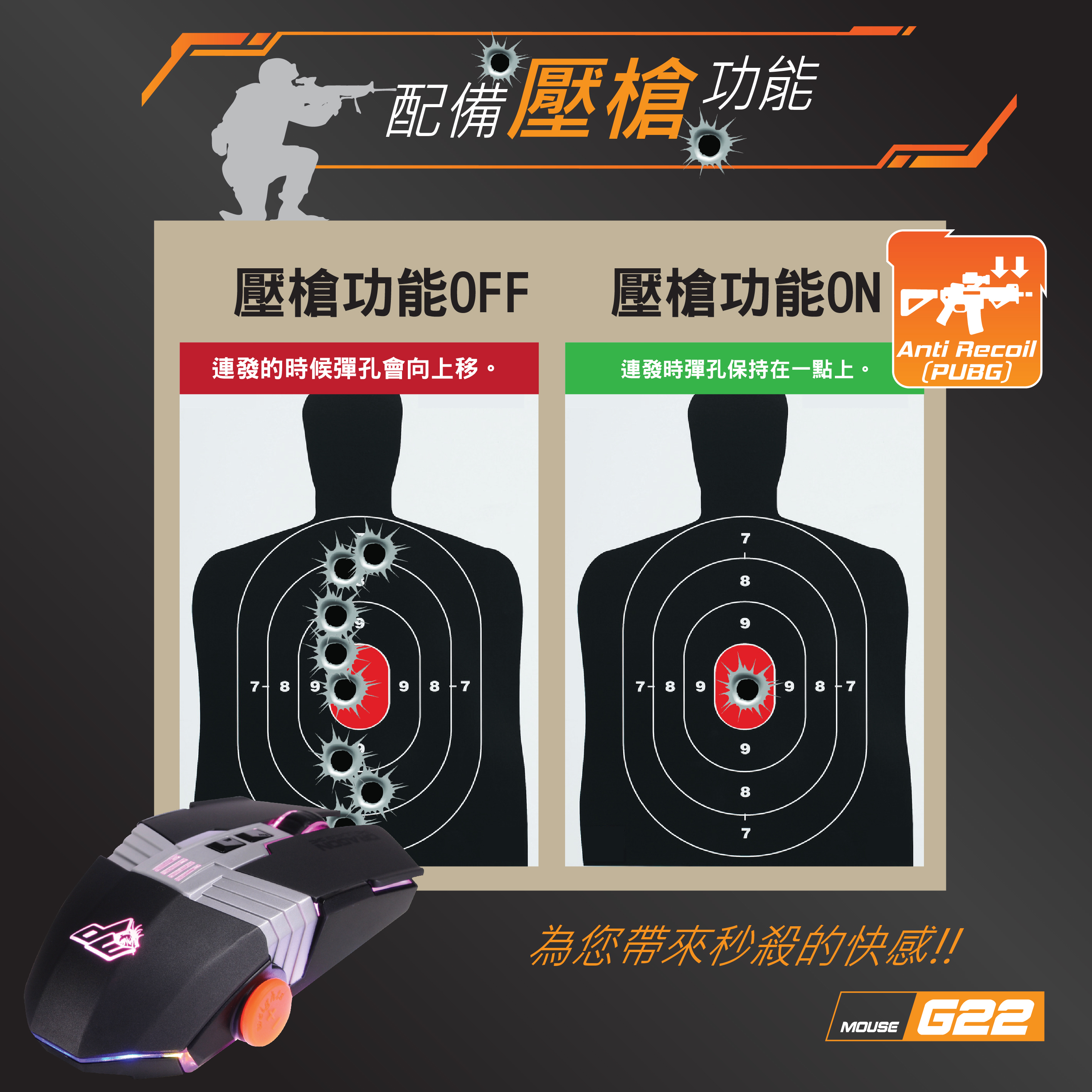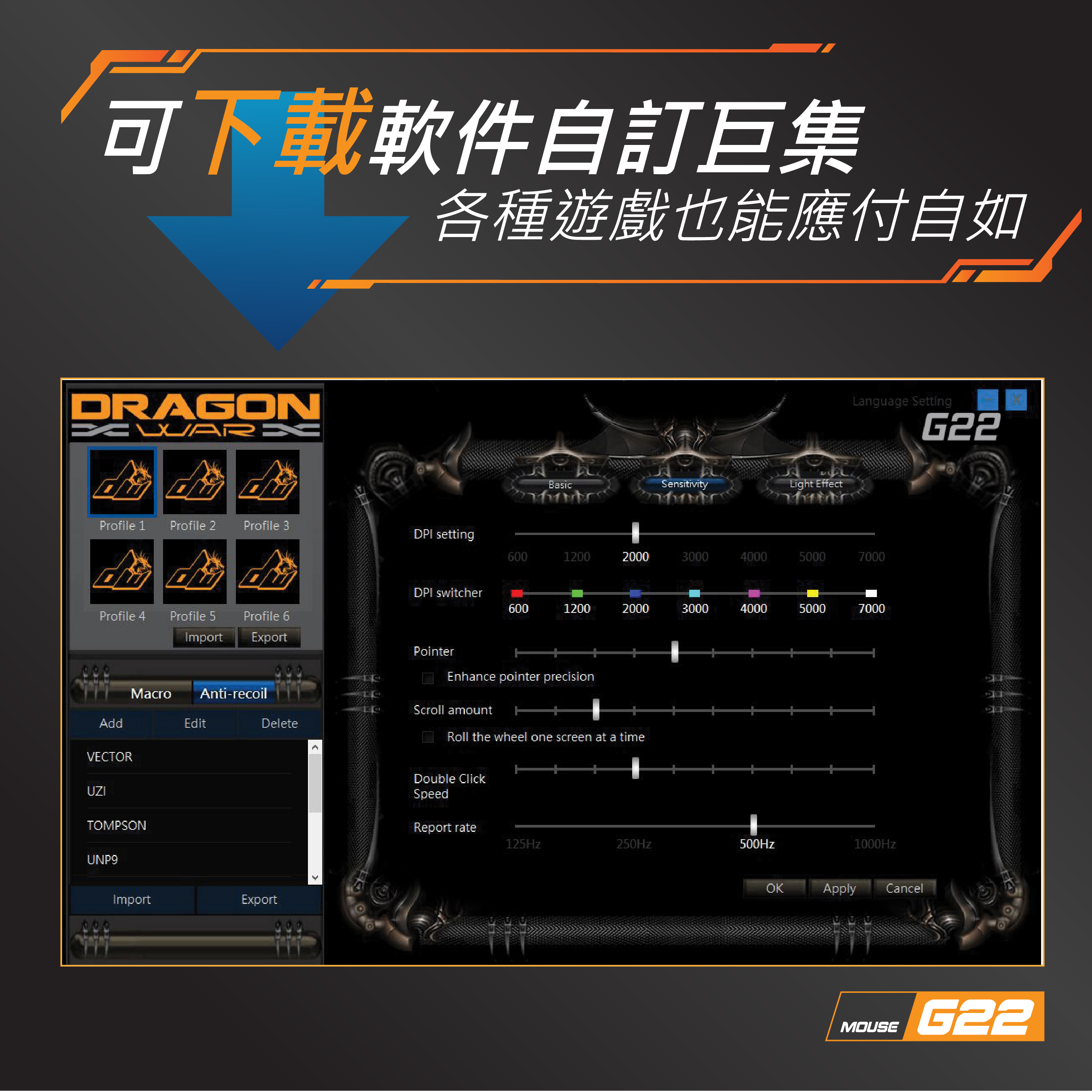 G22 7000dpi 自動壓槍功能 重量調節 電競滑鼠