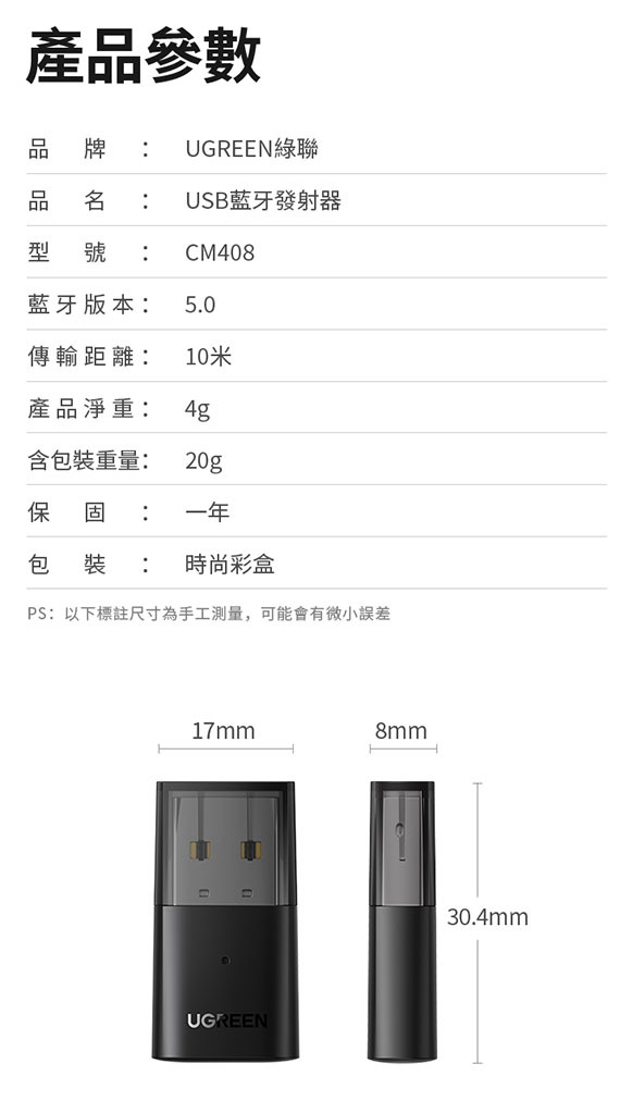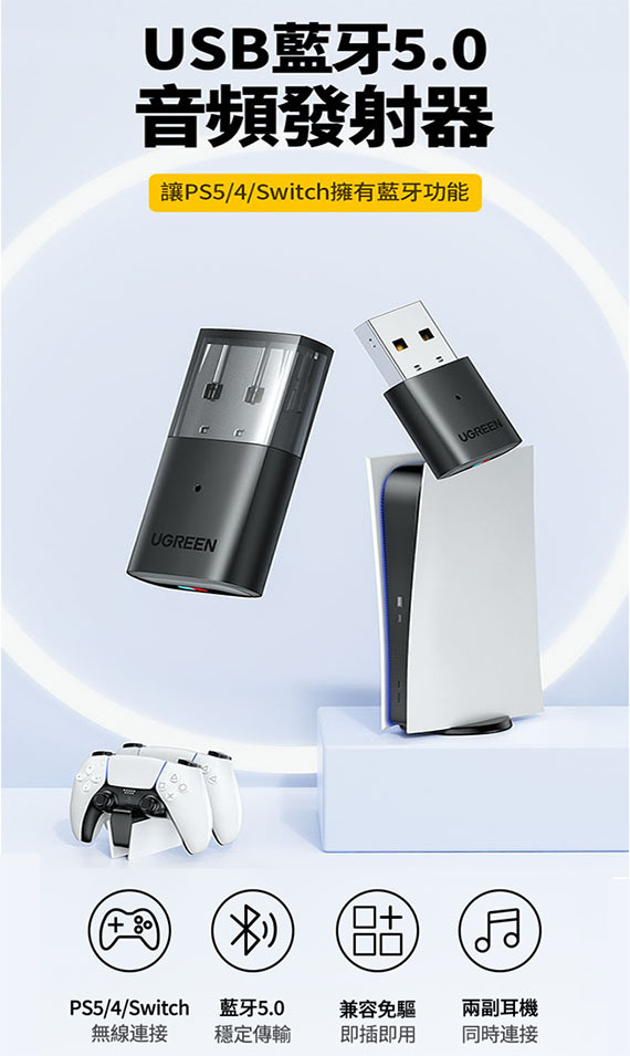 UGREEN 綠聯 - 10928 藍牙5.0接收器 (遊戲機Switch、PS4 PS5專用,不適用電腦)