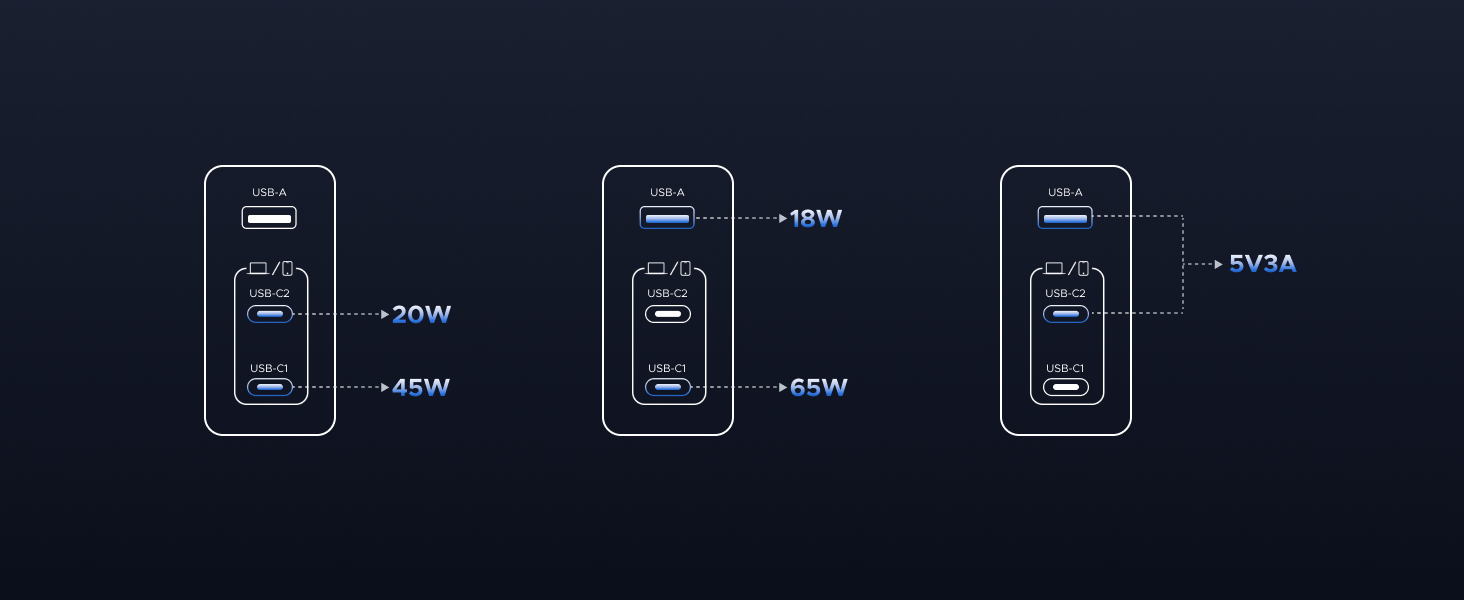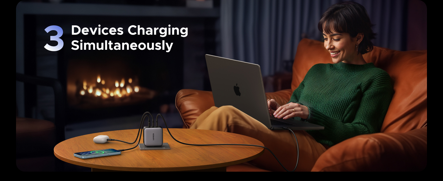 - 3合1 (1 X USB-A + 2 X USB-C) 插頭充電